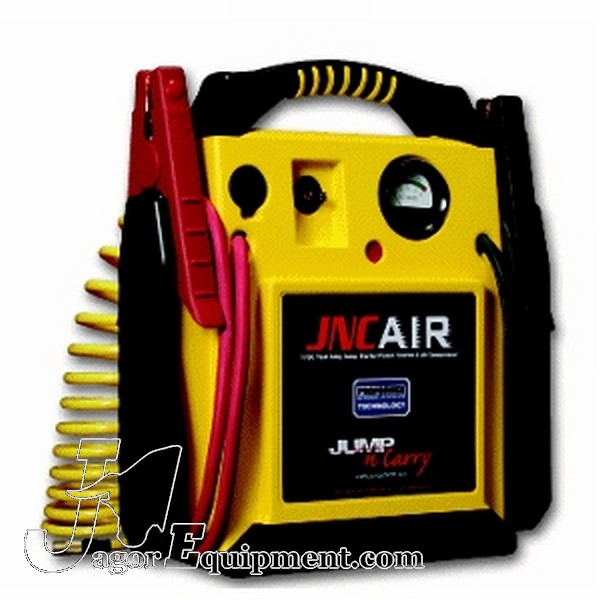 Solar Jump N Carry Jumpstarter JNCAIR Battery Boost Pack with Air Compressor. New Commercial Duty portable Jumpstart Box with Air Compressor built in. Take 12v DC power and compressed air where and when you want it. Powerful 1700 Peak AMP boost rating. Compressed air output that is not a joke like some consumer models. Use it to jumpstart any car, light truck or turf equipment.