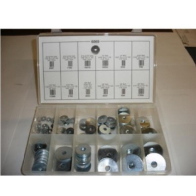 Buy NowAuveco 6869 Custom Fender Washer Assortment in 7" x 11" poly box. Twelve different size Fender Washers all labeled with size, picture and part number for easy refill orders. Sufficient for any size repair facility.